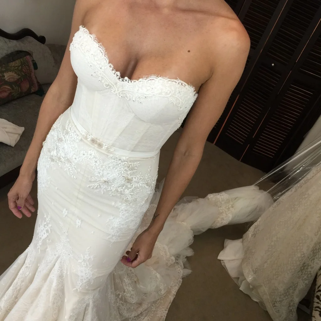 I walked in thinking I wanted one thing and walked out with something completely different. My dress was Lucy's pick and I am so grateful she pulled it. It was the second dress I tried on and I immediately knew that this Monique Lhuillier wedding gown was for me.
