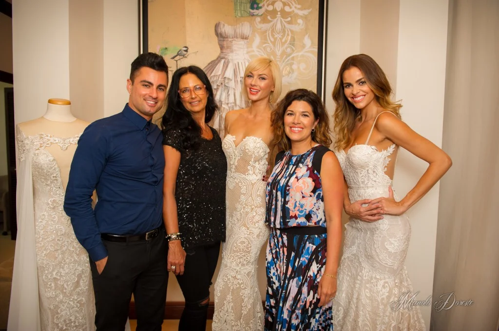 If you've seen Hayley's Instagram, you get the impression that she's as bright, beautiful and fun as the gowns that she designs - and she is! Hayley, accompanied by her stylist bestie Jim Verraros and her new hubby, brought a fun, sparkly energy to the store. We had some champagne and the very talented nail artists at Vanity Projects were in store painting nails with custom designs inspired by dresses from Hayley's latest collection! To top it off we had a candy bar with all pink treats, giant confetti-filled balloons from Wynwood Letterpress and fashion illustrator Lesli Brown there drawing custom portraits of our guests!