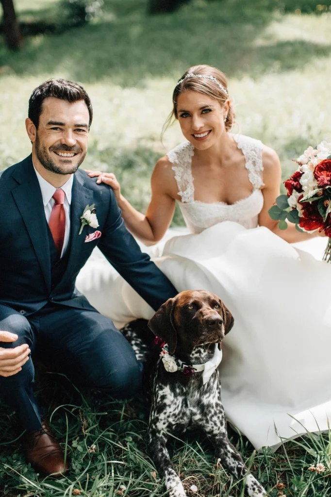 Nothing makes our heart beat faster than a #RealChicBride, in Monique Lhuillier, who incorporates her great loves into her photos - her husband and her dog.