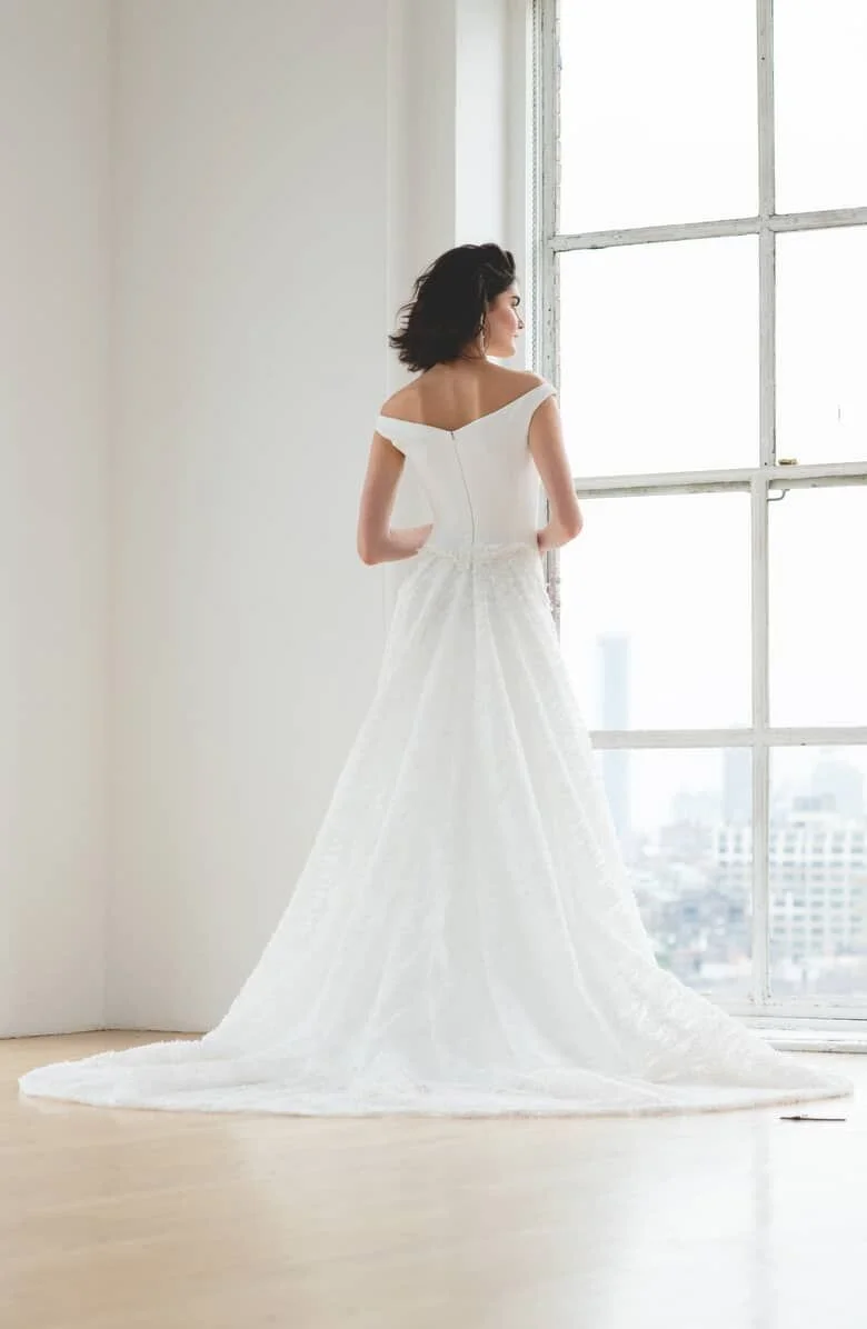 This dress can we worn with the lace topper or without for a two-in-one wedding day look - lovers of lace, this one is the perfect wedding dress for you. Luckily, she’s available in store now at Chic Parisien in our Coral Gables bridal boutique.