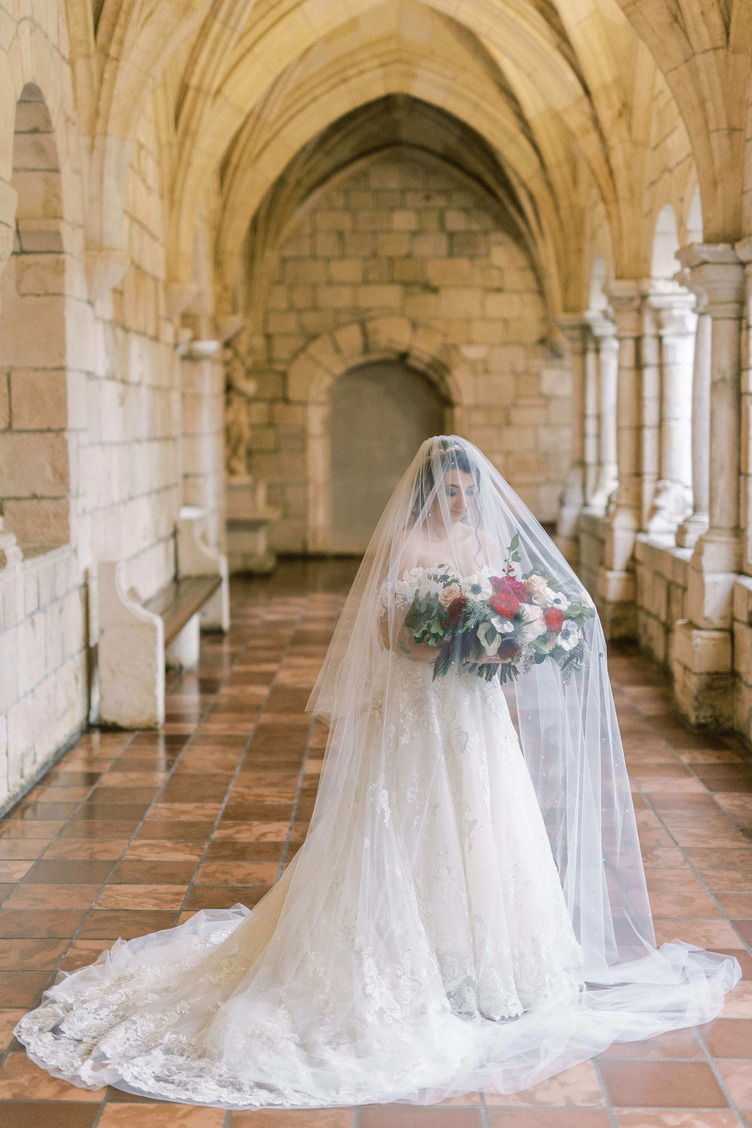 Sofia's Ancient Spanish Monastery Wedding in Monique Lhuillier