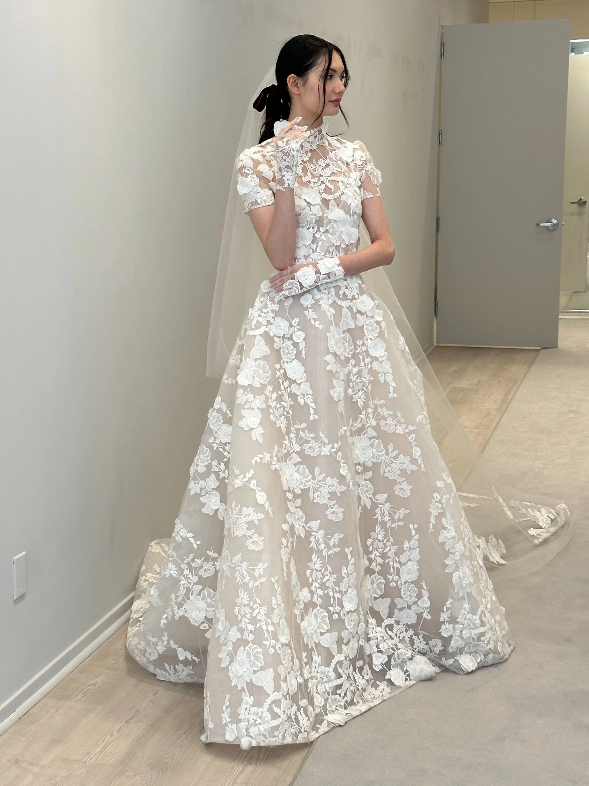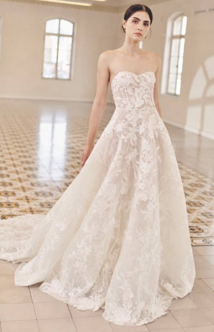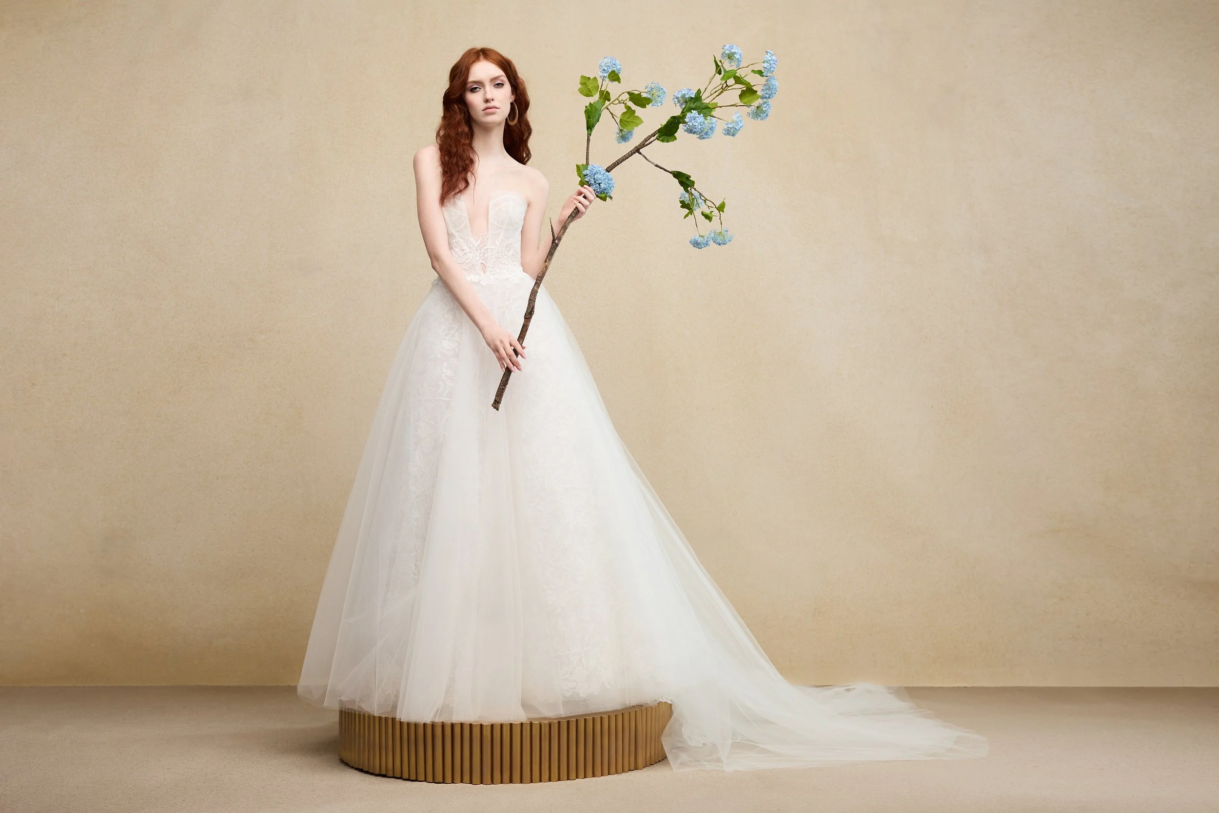 We won’t have these gowns available for another six months or so in our collection (it takes time to make these beautiful, chic, handmade bridal gowns!) but if you see something you love, you should keep an eye out for a trunk show by that bridal designer where the collection will visit our Coral Gables bridal boutique in its entirely. Trunk shows are the best way to get a first look at the wedding dress collection of your favorite bridal designer way in advance of the dresses arriving for our stock.