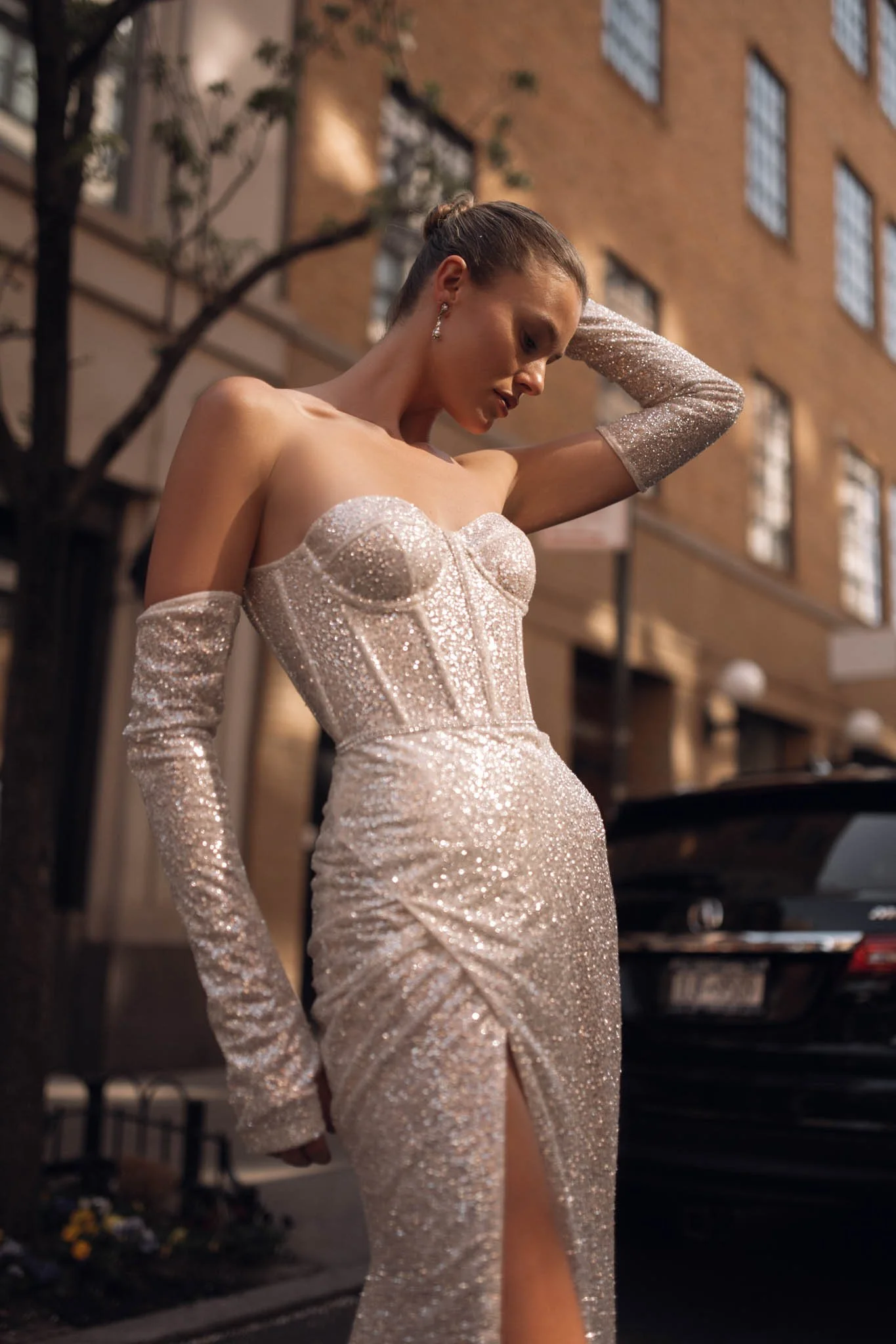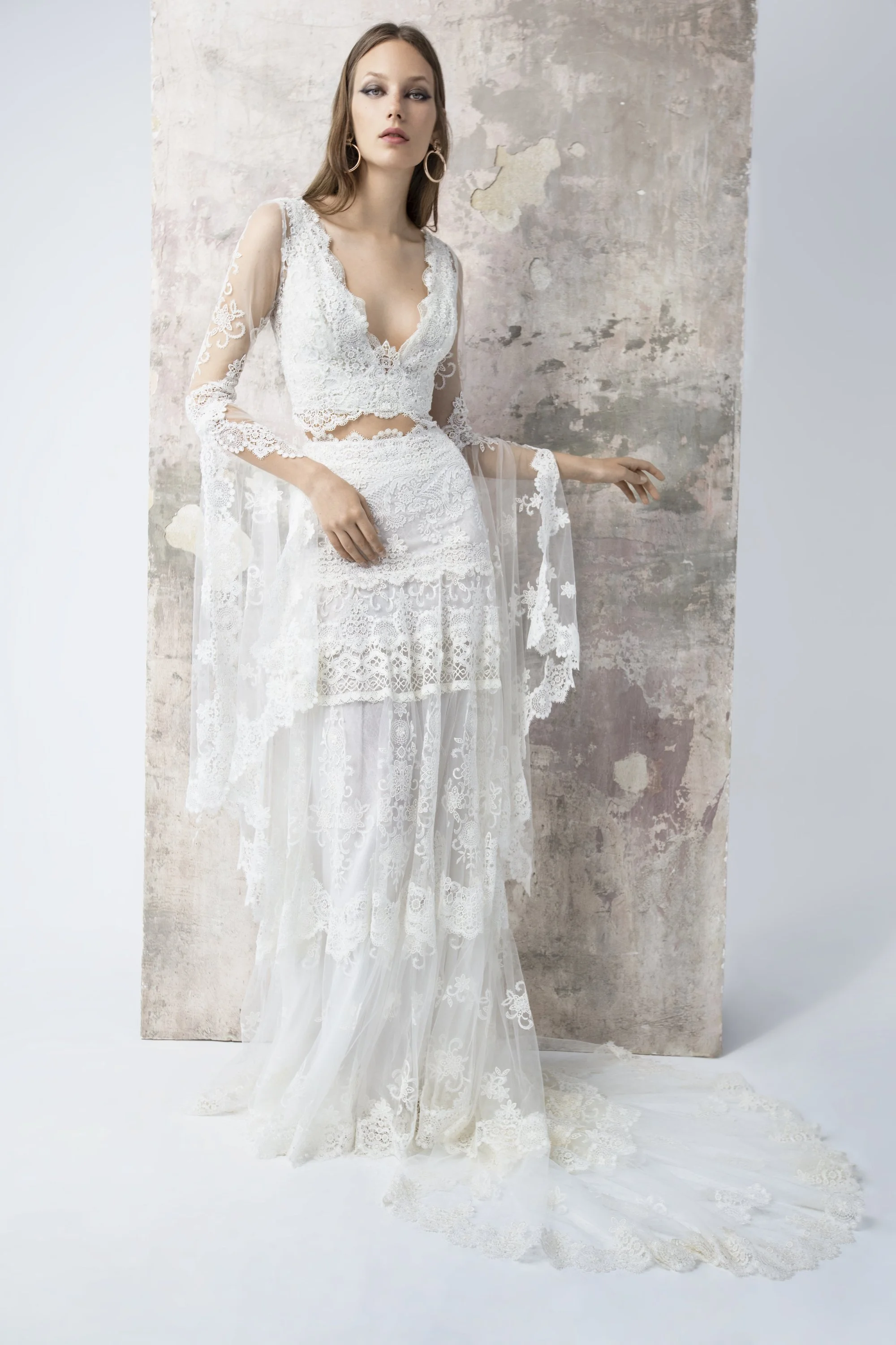 These dreamy, ethereal, chic dresses include all the bridal silhouettes that you love. There are sparkly ballgowns, high/low gowns, corseted tops, mermaid cuts, rhinestoned bows, long sleeved lace wedding dresses, soft, romantic a-lines. We have long adored the jaw-dropping work of this iconic Israeli wedding dress designer and we’re thrilled to have this collection at our Coral Gables bridal boutique - you won’t want to miss it!