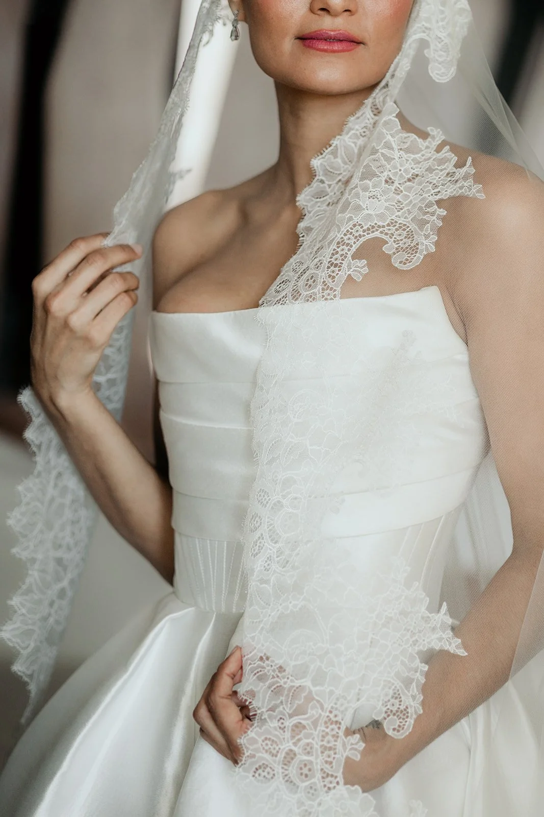 I felt very regal, very much like a princess in it. I didn’t even know I wanted to feel like a princess. But when else could you feel this way? Once we choose the dress, we picked a veil. I always knew I wanted a mantilla veil, and since the dress was simple … the mantilla veil with lace details complimented it perfectly. It was absolutely dreamy.