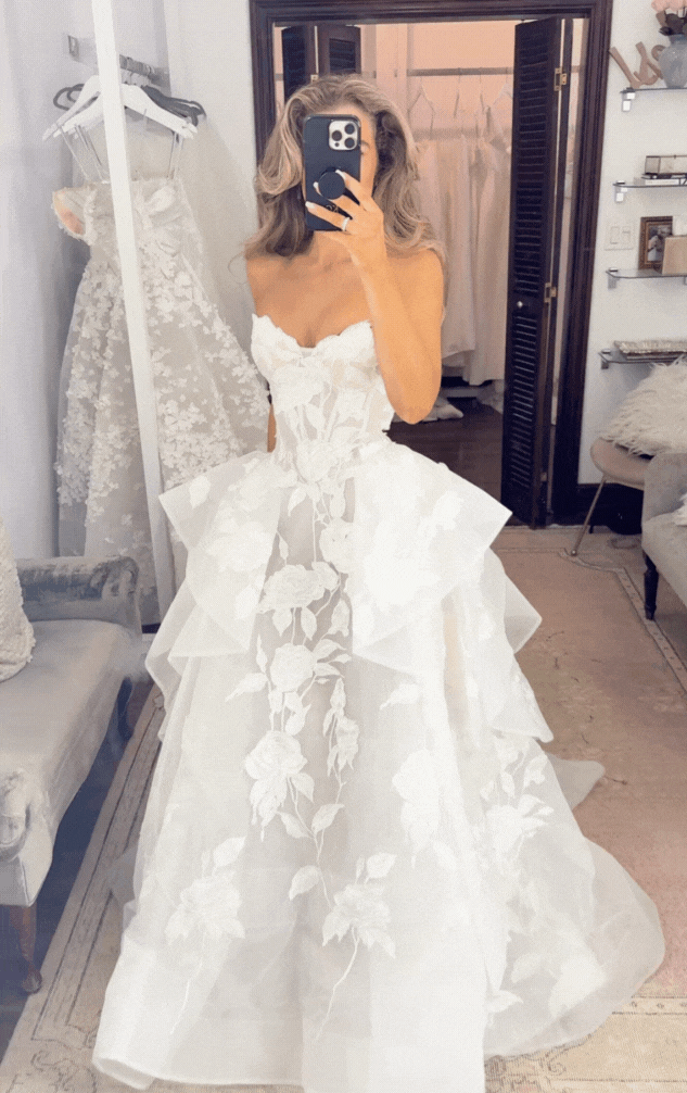 It took me 7 months to find my dress! I grew up in Ft. Lauderdale, FL so our first stop on the wedding dress hunt was Chic Parisien. I thought I knew what I wanted, but after seeing different styles I became very conflicted so wanted to continue to look. From there, we looked in boutiques in Houston, Dallas, New York, and even Paris. I tried the Everest Gown in the Monique Lhuillier New York Flagship Store and was just blown away. My mom and sister knew it was the one immediately and I couldn't believe it just yet. When we got home, we asked Chic Parisien if they could order this dress so that I could try it in front of my grandmother before saying yes. They got the sample in July 2024 and once I was back in it, we all agreed it was mine. We also ordered the matching veil and additional material, since we knew we wanted to make a bolero for me to wear during our ceremony.